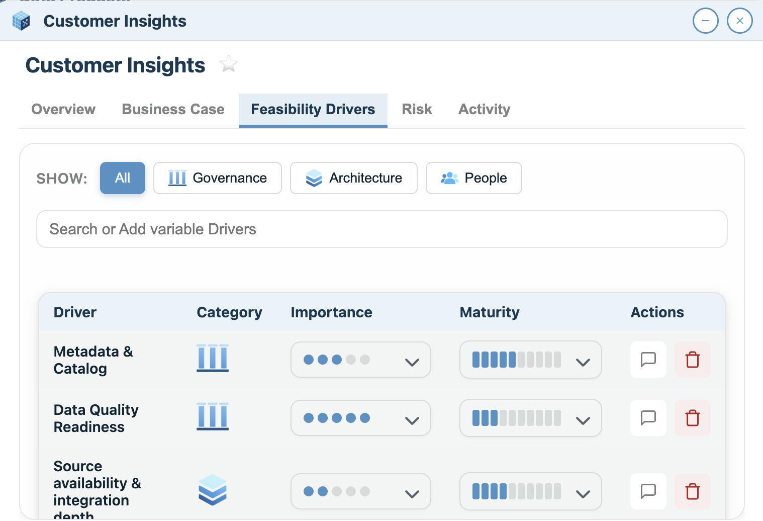 - Challengers: High impact, low feasibility. Invest to unlock.