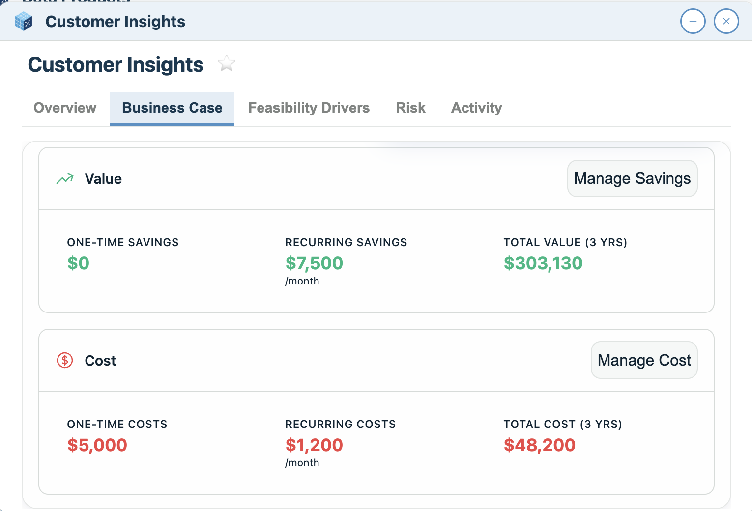 Costs, expected returns, ROI. Business cases that survive CFO scrutiny.