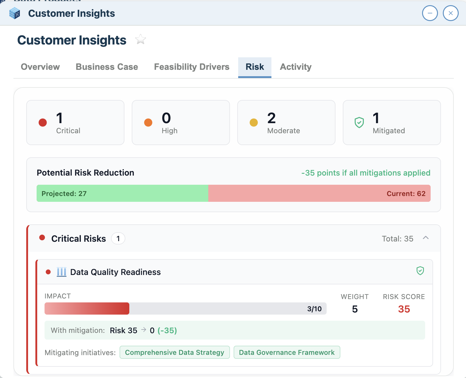 One place to capture, assess, prioritize, and track every AI use case. Upload your docs—AI extracts the structure. Chat with your portfolio. Benchmark against peers. Export board-ready reports.